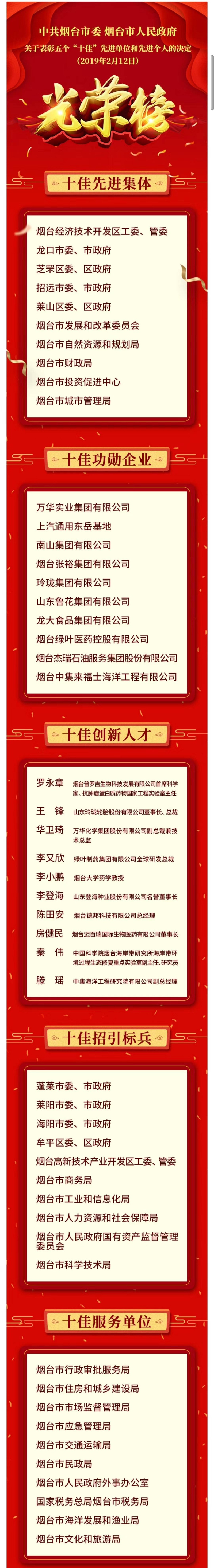 2月12日,2018年烟台高质量发展总结表彰大会召开。会议隆重表彰了烟台市十佳先进集体、十佳功勋企业、十佳创新人才、十佳招引标兵和十佳服务单位。乐竞荣获“烟台市十佳功勋企业”称号。