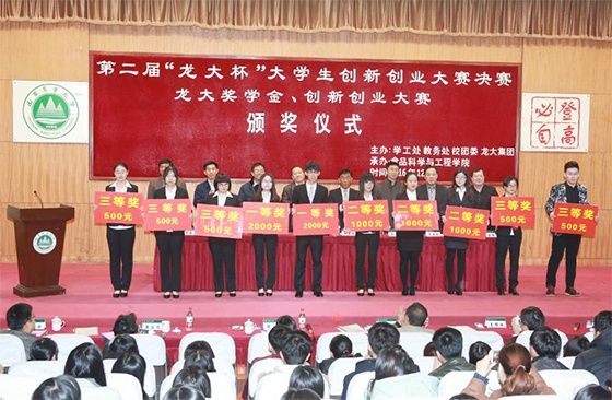 12月11日,山东农业大学食品科学与工程专业学生董铭、李秀清等35名学子,在“龙大奖学金、创新创业大赛”颁奖仪式上领到了乐竞颁发的奖学金,获得龙大集团奖励的还有10个大学生创新创业团队。