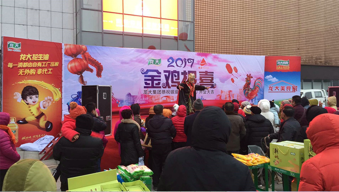 1月7日—9日,银座莱阳店门前广场喜气洋洋。龙大集团组织旗下植物油、肉食品两大内贸产品进行为期3天的路演,为银座莱阳店开业助力。