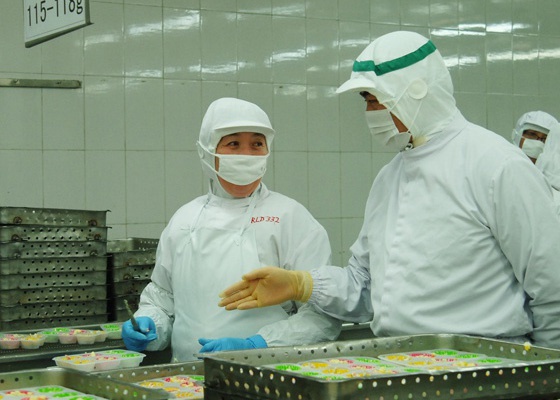 12月13日,陕西省定边县政府考察团一行6人在莱阳市副市长陶永伟等人的陪同下,抵达龙大,并对龙大集团速冻蔬菜保鲜产业的相关情况进行了考察。