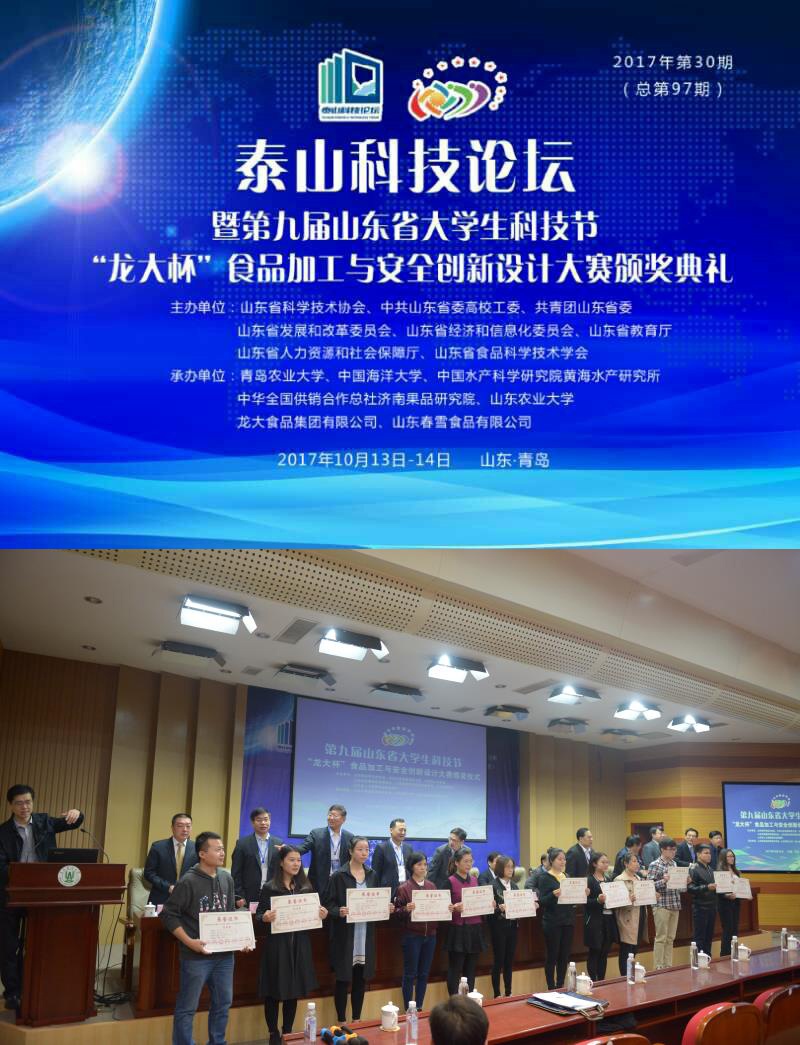 10月14日,泰山科技论坛暨第九届山东省大学生科技节“龙大杯”食品加工与安全创新设计大赛颁奖典礼在青岛农业大学举行。乐竞参与承办此次活动,旨在激励大学生的创新创业意识,发掘、培养应用型人才,并为他们提供创新创业平台。