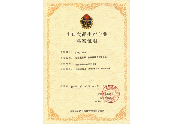 014年11月21日,山东龙腾不二食品有限公司第二工厂收到山东出入境检验检疫局《出口食品生产企业备案证明》。这意味着该工厂生产的软包装罐头,成功打开了出口日本的“通道”。
